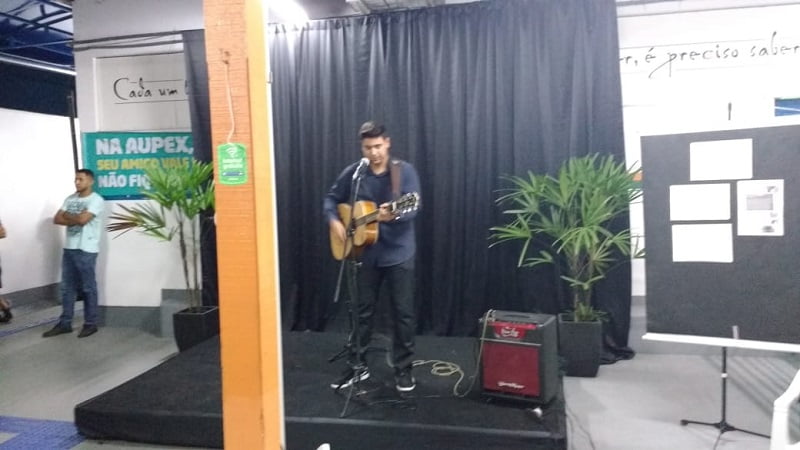 No segundo dia da Semana da Pedagogia da Aupex Uniasselvi, na última terça (21/05), o show ficou por conta do acadêmico do curso de Pedagogia, Armando, (turma PED 1494), da tutora Cristina Carvalho Tomasi. Armando cantou uma música de autoria própria em homenagem aos professores. Depois, foi a vez do tutor do curso de Ciências Contábeis, Ronaldo da Silva, mostrar seu talento musical e embalar a plateia com duas músicas.