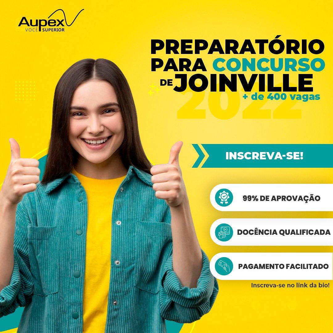 Se você é um dos nossos egressos da área de Licenciatura, acadêmico que deve concluir o ensino superior ainda este ano ou profissional da Educação que busca a oportunidade de se tornar um servidor público efetivo municipal, faça o curso de preparação Aupex inscrevendo-se em https://api.whatsapp.com/send?l=pt_pt&phone=554730255077 ou pelo nosso fone (47) 3025-5077.